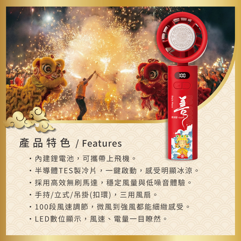 結合信仰與實用的全方位夏日神器——鎮瀾宮聯名三合一清涼組,一次滿足降溫、充電與外出便利需求。由鎮瀾宮聯名加持,不僅是日常3C配件,更象徵隨身守護與安心陪伴。