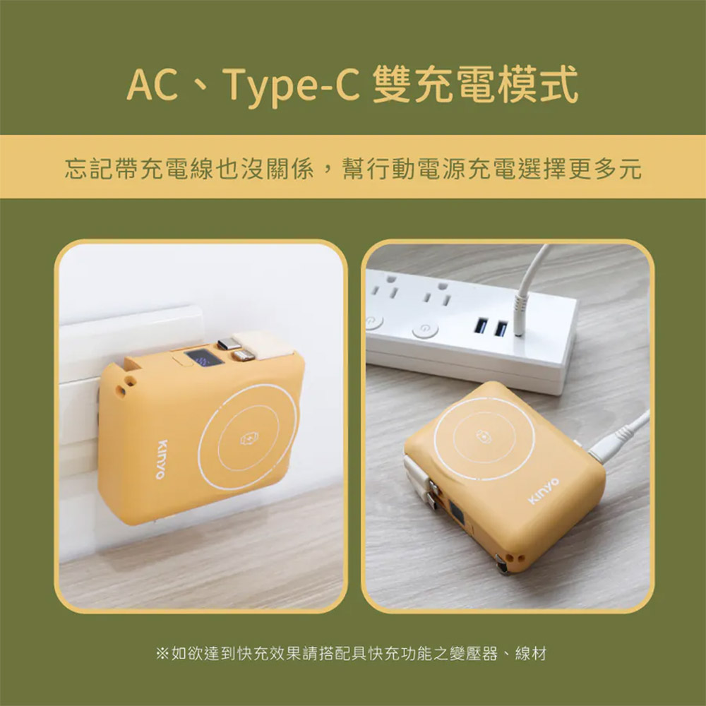 AC 折疊插頭 + Type-C 輸入雙模式充電,插座直充或快充皆可,真正滿足 日常、商務、旅行 的全場景需求!
